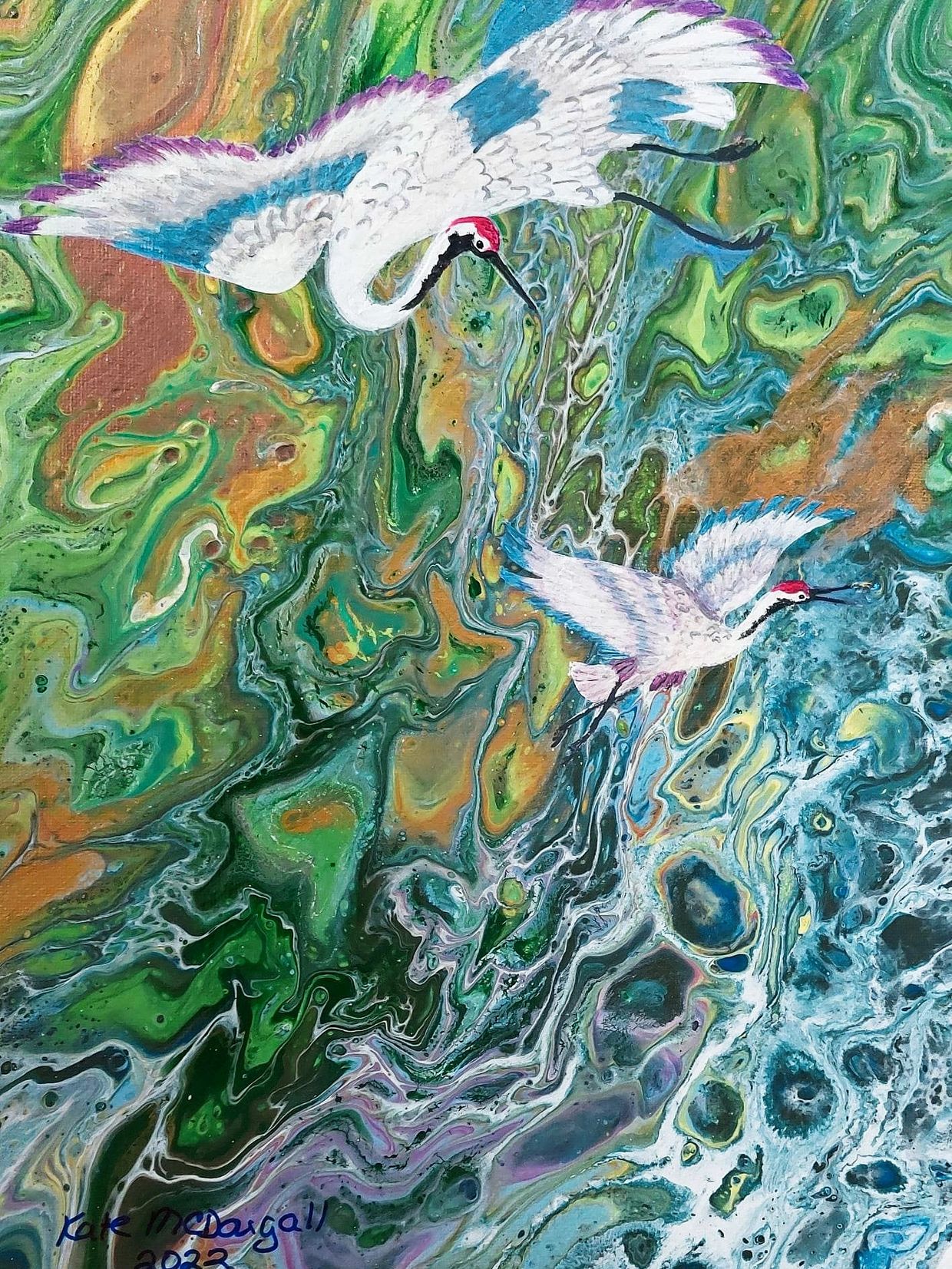 My journey with art began in my teenage years when I discovered dance. Movement provided me with a means of expression that suited me perfectly. For eighteen years I taught, choreographed, and performed. While my livelihood entailed teaching English and history to middle schoolers, dance kept me grounded and centered. Decades later, after retiring from teaching, I took up painting. In learning this new art form, I began to experience a similar effect that dance had on me in my early years. Last year I discovered Acrylic Pouring, which is a way of moving fluid paint on canvas with surprising results. I soon began to recognize my affinity for flowing movement, this time with paint, instead of dance. This style of art has brought me so much joy and sense of wholeness. I hope you find something in my work to make you smile.